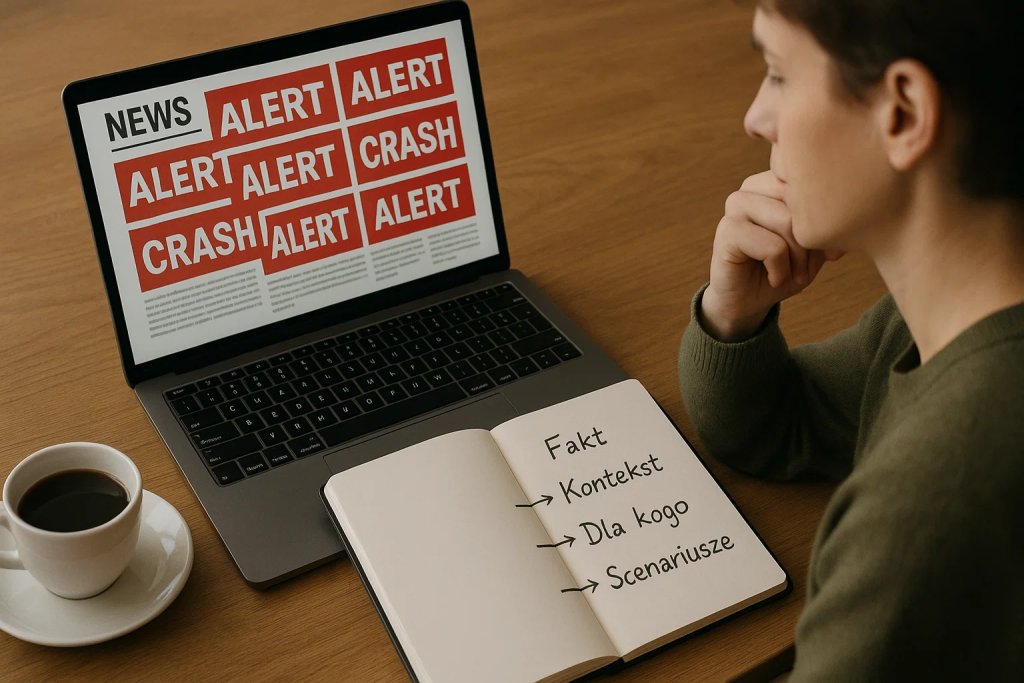 Większość osób nie musi być ekonomistami. Wystarczy prosty sposób czytania wiadomości, który pomaga oddzielić fakty od komentarzy, zrozumieć podstawowy kontekst i sprawdzić, dla kogo dana informacja jest naprawdę ważna. Zamiast reagować paniką albo całkowicie odcinać się od newsów, można nauczyć się patrzeć na nie jak na dane tło do własnych decyzji.